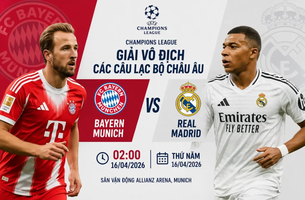 Trận Bayern Munich gặp Real Madrid ở khung giờ 02:00 ngày 16/04 mang đậm màu sắc của một màn thư hùng đỉnh cao châu Âu. Khi hai thương hiệu hàng đầu như Bayern Munich và Real Madrid bước vào sân, yếu tố đẳng cấp cá nhân, kinh nghiệm knock-out và bản lĩnh ở thời điểm quyết định gần như luôn trở thành chủ đề trung tâm.