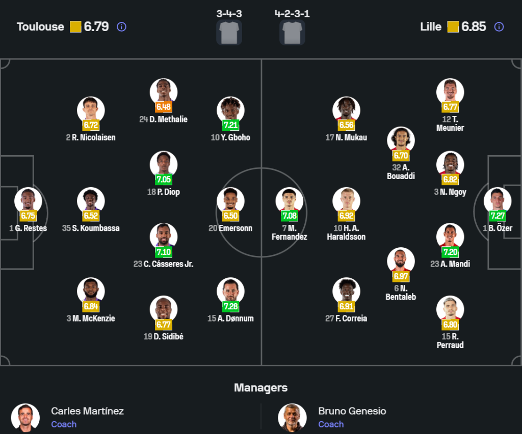 Đội hình dự kiến của Toulouse nhiều khả năng vẫn xoay quanh cấu trúc ưu tiên sự cơ động ở tuyến giữa, với mục tiêu khóa không gian chơi bóng trung lộ của đối phương và tận dụng các pha bứt tốc ở biên. Vấn đề lớn nhất của họ là phải bảo đảm khoảng cách giữa hàng tiền vệ và hàng thủ không bị kéo giãn. Chỉ cần mất kết nối ở khu vực này, Lille sẽ có cơ hội tung ra những pha chọc khe hoặc phối hợp ở nách trung lộ rất nguy hiểm.